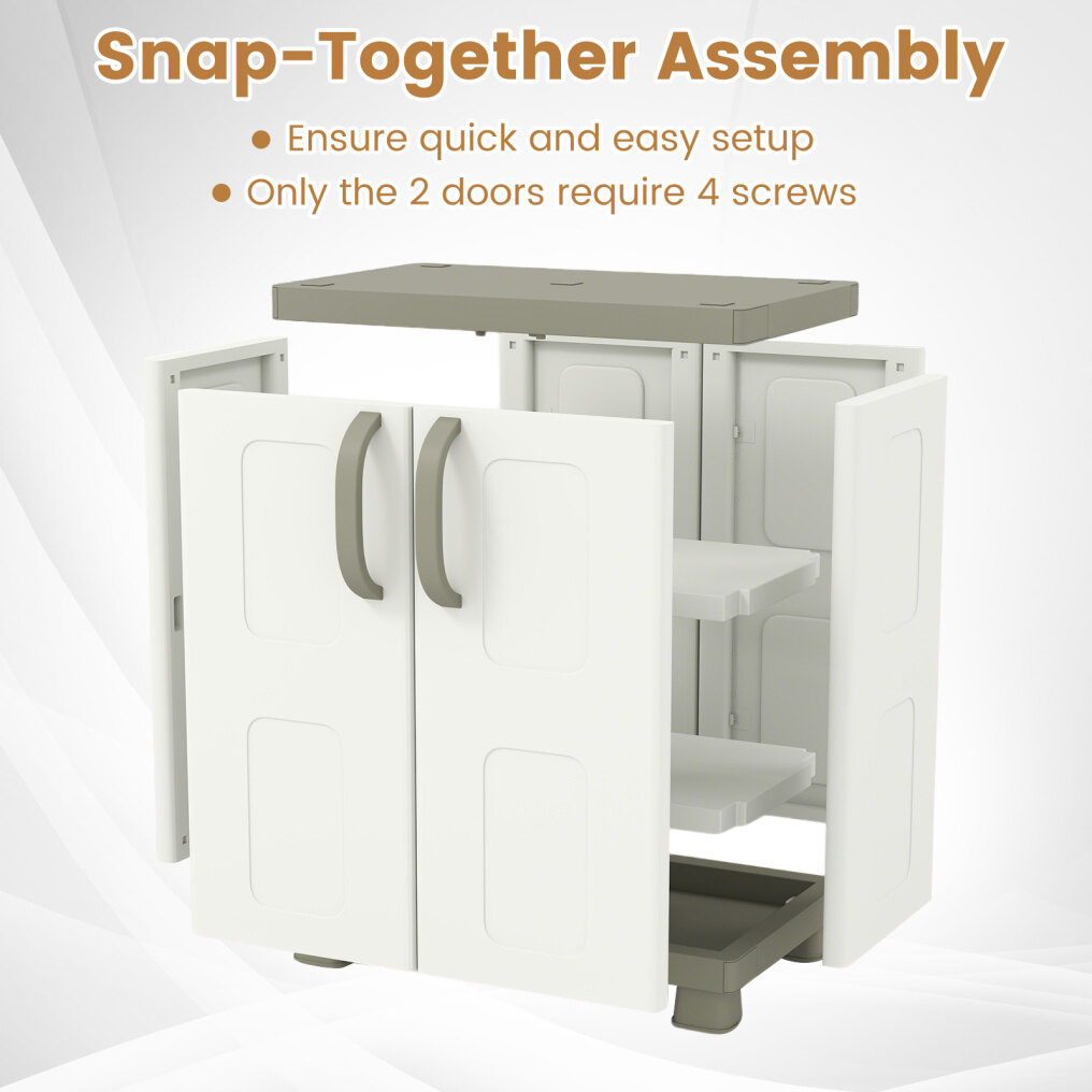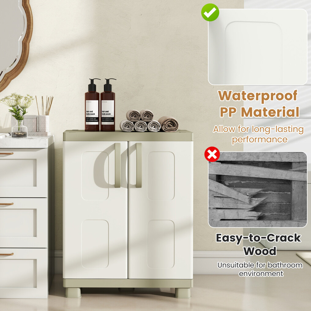 ● Waterproof Plastic Build: Crafted from high-quality and waterproof PP material, the plastic utility cabinet solves the problem of traditional wooden furniture warping. Additionally, the smooth surface allows for easy wipe cleaning.