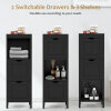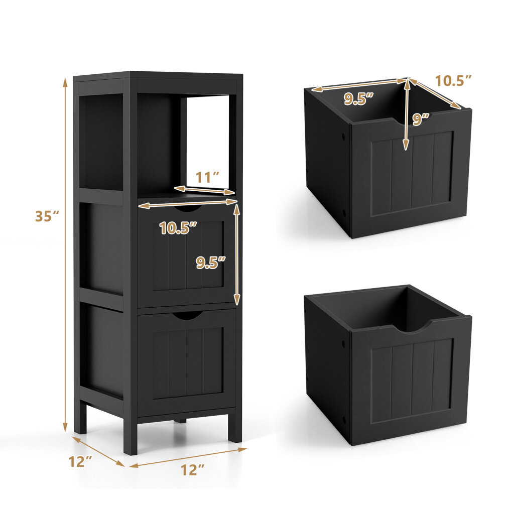 This 4-tier floor cabinet comes with a spacious cabinet top, two removable drawers, and one open rack, providing ample storage space for you to organize items in order and in the partition. Besides, the back anti-toppling mechanism enhances using safety and the elevated bottom offers a dry storage place. The whole storage side cabinet is made of durable MDF, ensuring excellent sturdiness and a high load capacity of 66 lbs. And exquisite craftsmanship enhances long service life. Plus, the polished surface and chic appearance make this display holder suitable for various occasions, such as the bathroom, living room, and bedroom.