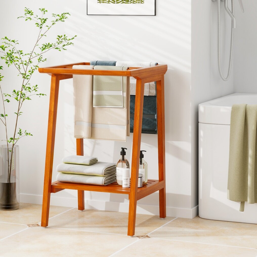 ● Solid Teak Wood Construction: Crafted from high-quality teak wood, known for its durability and low maintenance, this towel rack is suitable for both indoor and outdoor use, ensuring long lifespan and aesthetic appeal. Note: This towel rack should not be exposed to rain and is not suitable for long-term outdoor use.