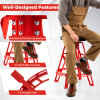 Sturdy Aluminum Frame: This mechanical stool features a solid aluminum alloy frame that is anti-deformation, rustproof, and lightweight. The reinforced screw connection and 4 enlarged legs also increase stability, ensuring a maximum load capacity of 400 lbs.