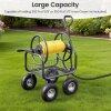 ● Large Capacity: Manage your watering with ease with this garden hose reel cart, capable of holding 300 ft of 5/8" or 350 ft of 1/2" hose (hose not included), providing ample length for larger gardens and commercial spaces, reducing the need of constant relocations.
