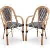 ● The Charm of France in Your Home: Inspired by the chic Parisian decoration, these patio chairs feature beautiful blue/black and white hand-woven PE wicker that perfectly complements the wood-like frame surface, bringing a serene, picturesque French vibe to your outdoor space.