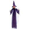 ● Spooky Hanging Witch Decoration: The hanging animated witch wears a purple robe with a witch hat on her head to give you more real vision feeling, creating spooky atmosphere for your Halloween party. And you can reposition her posable arms for a new terrifying pose.