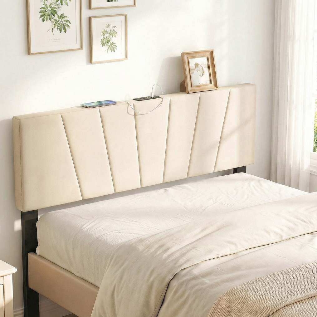 Comfortable Upholstered Headboard: Covered in skin-friendly polyester fabric and filled with elastic sponge filling, this upholstered headboard offers a soft touch that enhances your bedtime experience for reading, watching TV or just lounging.