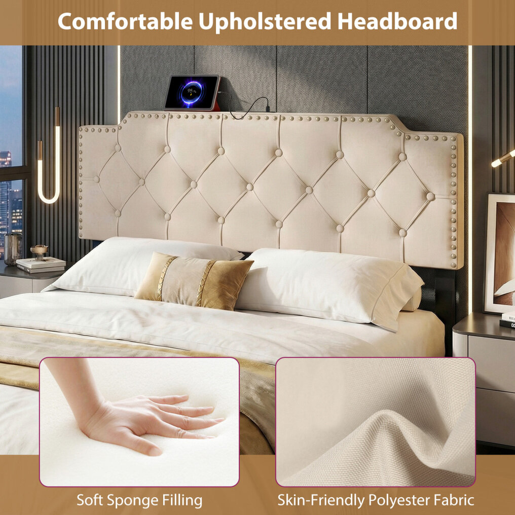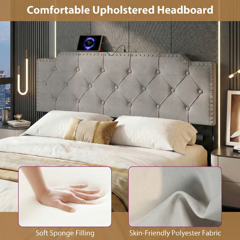 ● Comfortable Upholstered Headboard: Covered in skin-friendly polyester fabric and filled with elastic sponge filling, this upholstered headboard offers a soft touch that enhances your bedtime experience for reading, watching TV or just lounging.