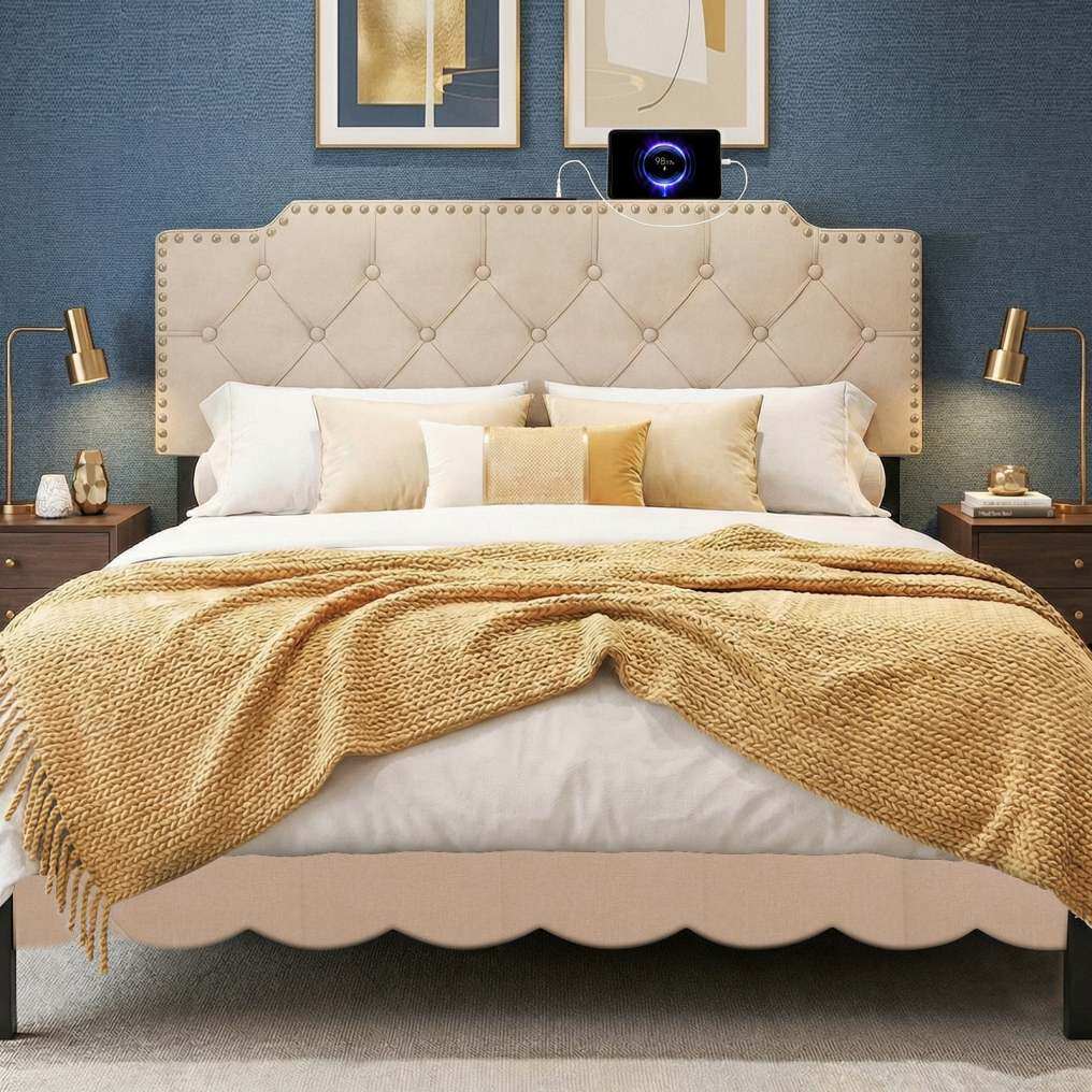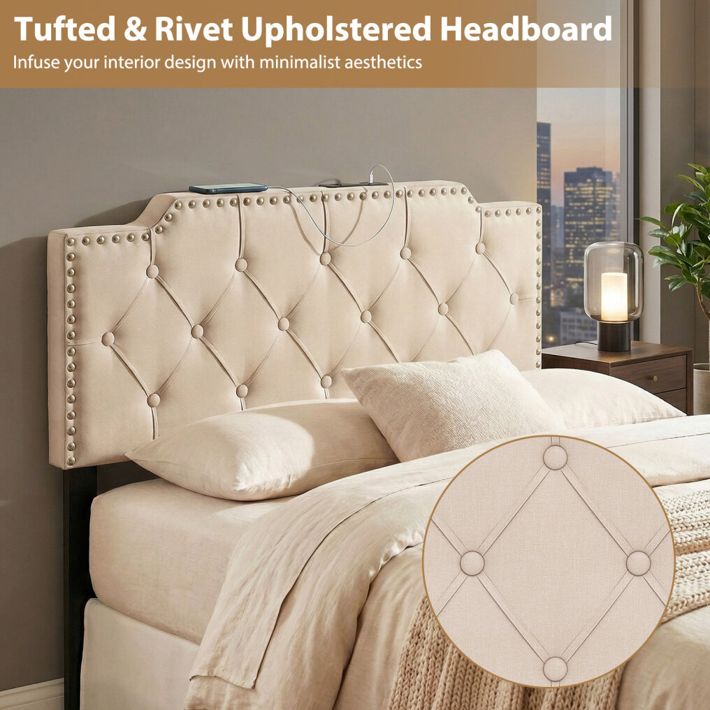 ● Rivet Tufted Aesthetics: This modern headboard embellishes your bedroom with striking lines. The classic rivet and tufted appearance not only enhance the visual appeal of the space but also complement various minimalist or contemporary styles.