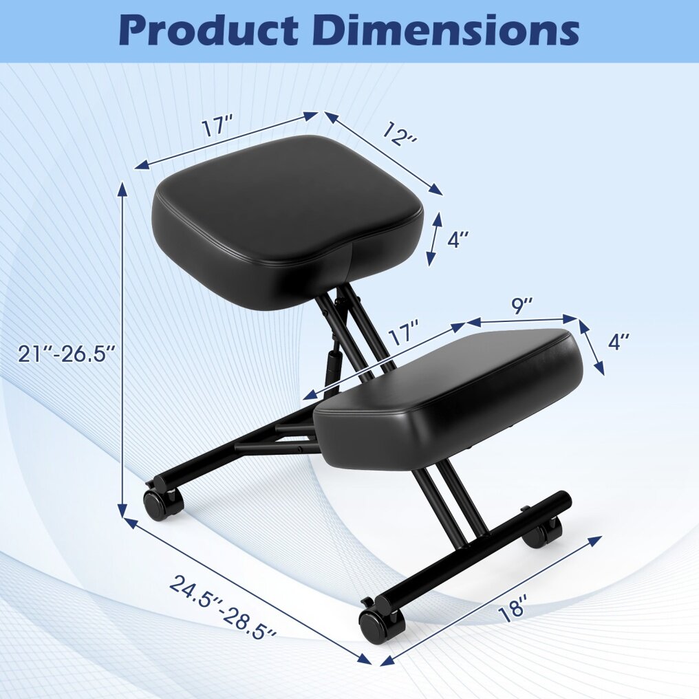 Comfortable Cushions: With thickly padded cushions made from high-density sponge, the ergonomic kneeling chair promises not only ultimate comfort but a form-fitting support that contours perfectly to your body. Plus, the upholstered PVC leather is waterproof for easy cleaning.