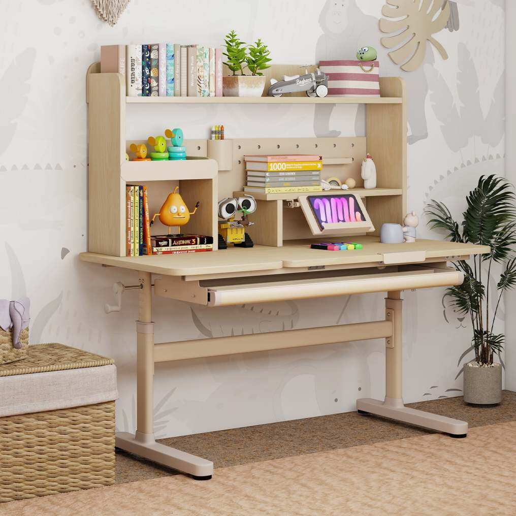 Grow with Children: With a convenient hand crank, the study desk can be easily adjusted from 112 cm to 135 cm, which is ideal for fast-growing children. You can freely raise or lower the desktop to fit kids of different ages.