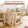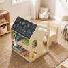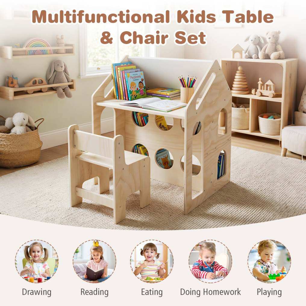 ● 3-in-1 Kids Furniture Set: The house-shaped table and chair set combines an activity table, chalkboard, and 2-tier kids bookshelf in one. It not only encourages kids to read books, but also allows them to draw with their imagination.