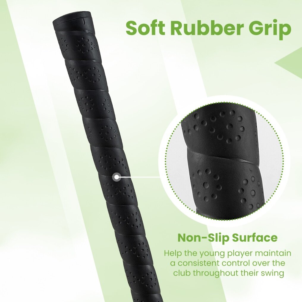 Ergonomic Design: Engineered with a right-hand orientation and a soft rubber grip, this junior golf iron ensures a comfortable and secure hold. The non-slip surface on the grip can help the young player maintain a consistent control over the club throughout their swing.