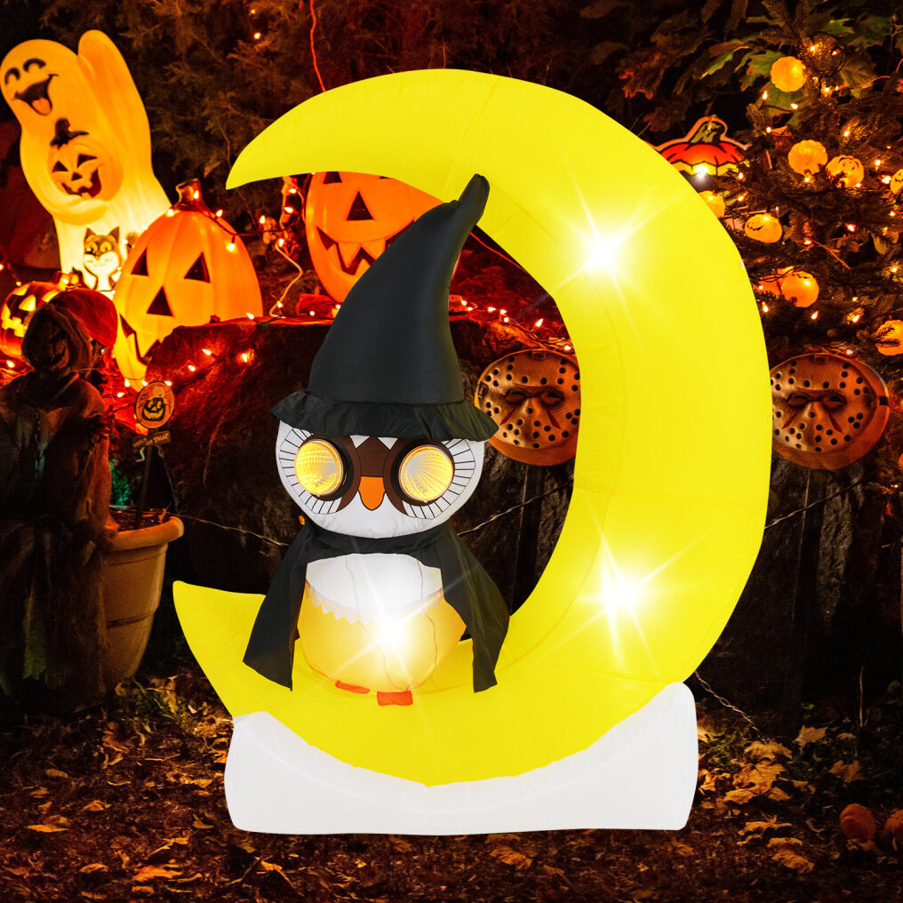 ● Large Moon and Wizard Owl: This colossal inflatable decoration features an owl with witch hat perched on a luminous crescent moon, creating an enchanting Halloween scene that will captivate your neighborhood with its magical presence.