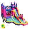 ● Royal Princess Splash Zone: The inflatable water slide unfurls into a fairy princess castle with a water-splashed slide, shallow pool, bounce house, climbing wall, mini-basketball hoop and ring-toss posts so kids can alternate between soaking races and dry slam-dunk contests. The cute graphic makes it look like a storybook kingdom come to life!