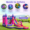 ● Child-friendly Design: ASTM/CPSIA compliant jumping house protects players with extra-tall slide guardrails and 9 ground stakes that keep the structure rooted during cannonball exits. Parents can sip coffee while still spotting every flip and flop through the ventilated mesh.
