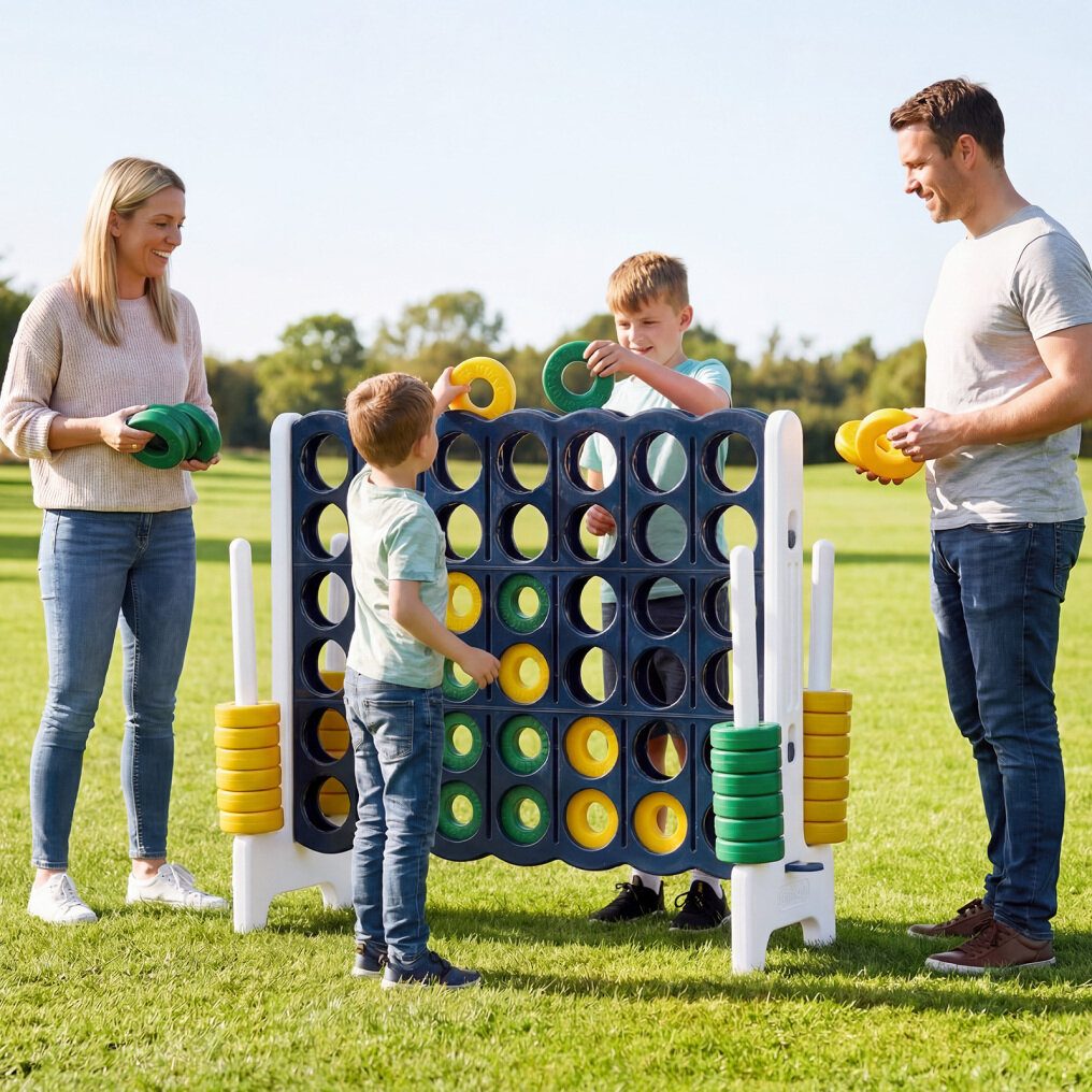 • Giant Connect-All-4 Game Set: This mega connect-all-4 activity set is an oversized version of the classic 4-in-a-row game. Measuring 3.5ft tall and 4ft wide and coming with 42 rings that are 5.3'' in diameter, this jumbo 4-to-score game creates a totally different playing experience from the smaller version, which will keep everyone entertained for hours.