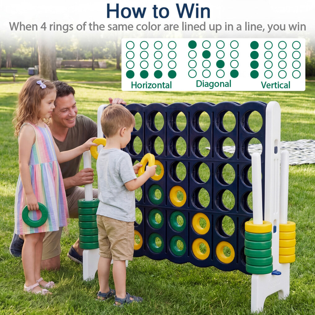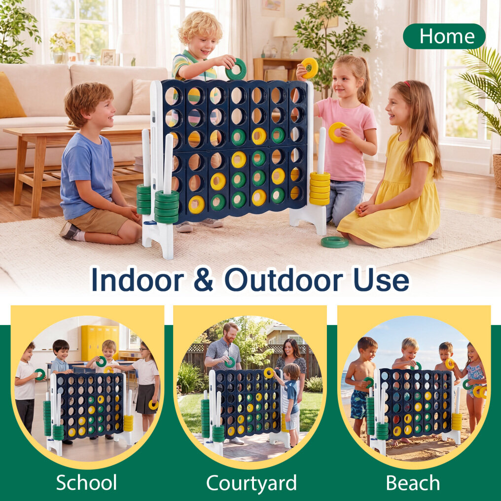 • Premium Material & Intimate Design: This jumbo 4-to-score game is made of selected PE and PP material that is very durable. It will not break or deform easily, thus ensuring long service life. The edges are smoothly rounded to ensure that the player will not be scratched during the game, so there is no safety risks.