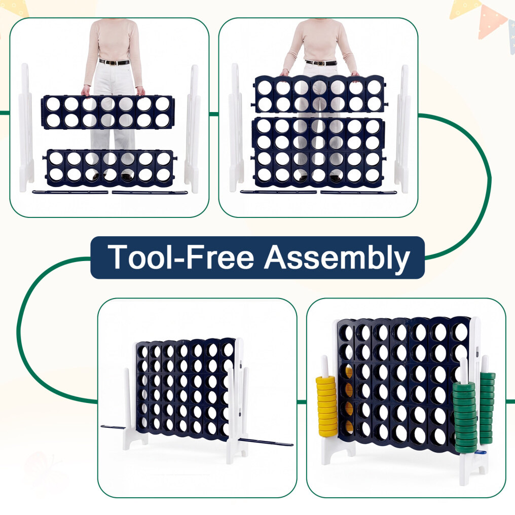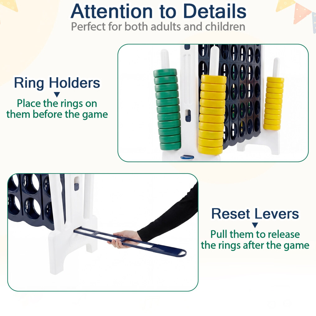 • Easy to Assemble and Use: Coming with no metal fittings, this jumbo 4-to-score game is super easy to set up and requires no tools. You can even complete all the assembly in just a few minutes without assistance. In addition, two game reset levers at the bottom can release all game pieces to restart the game, which is convenient to use.