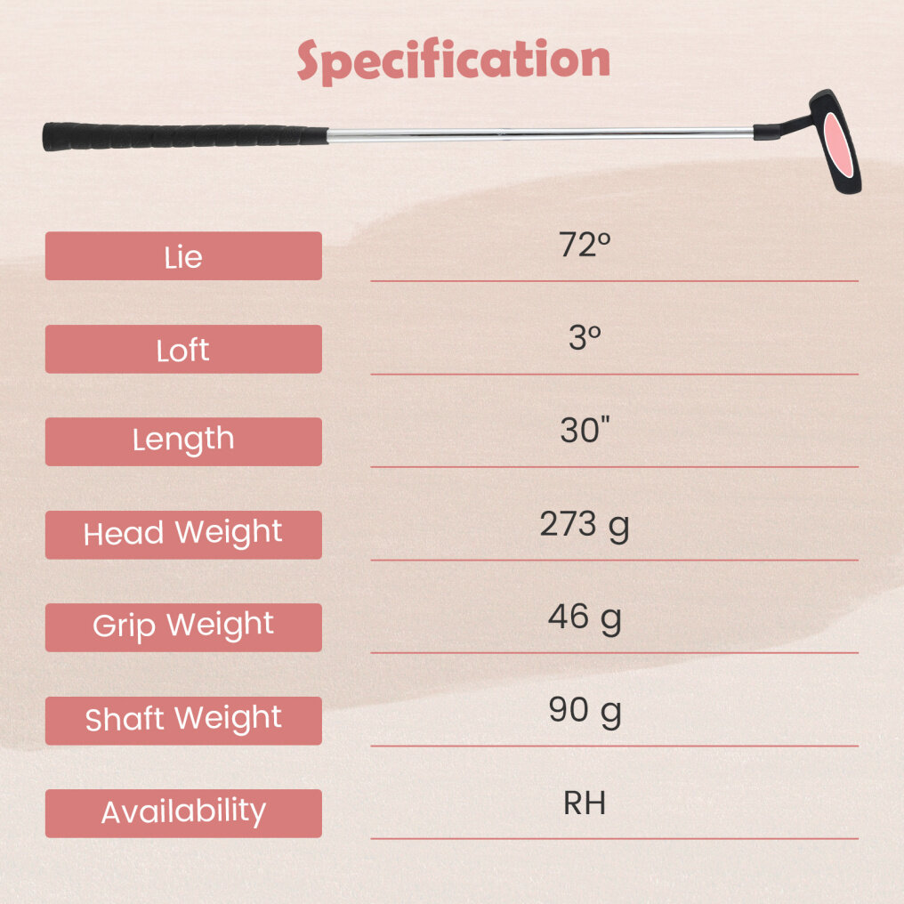 ● Ergonomic Non-Slip Grip: Equipped with a non-slip rubber grip, this putter provides young golfers with superior handling and stability. The grip's ergonomic design helps maintain proper wrist alignment and increases overall comfort during play.