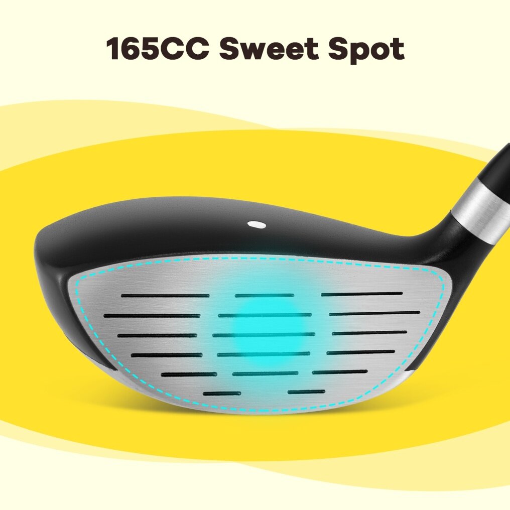 Premium Aluminium Head: The lightweight yet durable aluminum alloy head with a 165cc sweet spot enhances forgiveness on off-center hits, while the alignment aid feature helps young players improve shooting accuracy for better overall performance on the course.