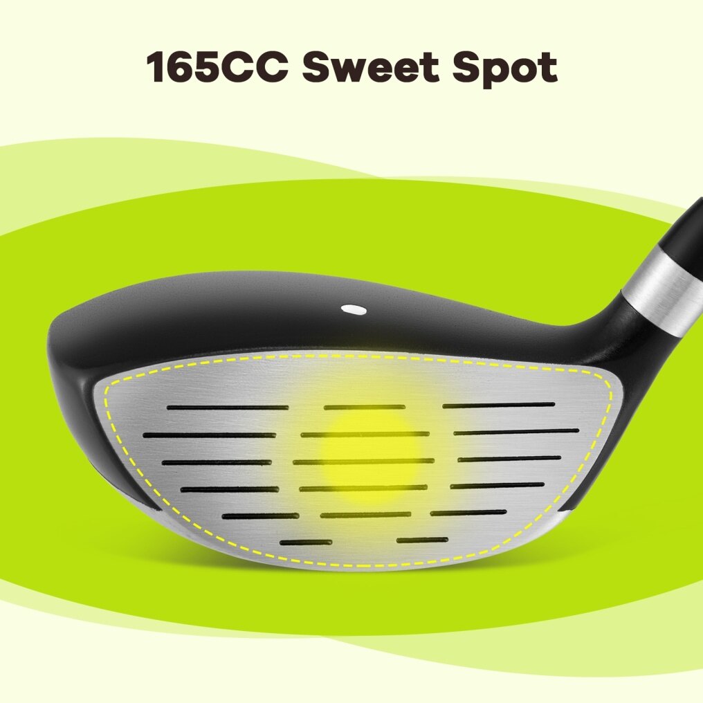 ● Aluminum Alloy Head: The aluminum alloy material can offer lightweight yet long-lasting performance, and the club head boosts 165cc sweet spot to provide an enhanced forgiveness on off-center hits. Plus, the club head is built with alignment aid for young players to practice shooting accuracy.