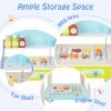 ● Safe and Child-friendly Details: Anti-falling baffles protect toys from falling down for added safety. Round corners and burr-free edges prevent bumping. Certified by ASTM and CPSIA, it's super safe for toddlers to use. Meanwhile, the countertop height is 23.5 inches, making it convenient for toddlers to reach for stuff.