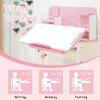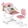 The desktop and chair are height-adjustable, which is suitable for fast-growing kids. The tiltable desktop can be positioned for the optimal angle for writing, reading, or drawing. Moreover, the reading stand can be used for placing books or tablets. To keep kid’s items neatly organized, the kids desk is equipped with removable tray, pen holder, spacious desktop, bookshelves, and partition drawer. Featuring double back support and sponge padded seat, the ergonomic kid’s chair ensures spine protection and helps children develop a good sitting posture. Plus, the footrest bar provides more comfort.