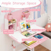Reading Stand and Ample Storage Space: The reading stand supports kid’s book to maintain a proper reading distance to better protect kid’s eyes. Built-in bookshelves, spacious desktop and partition drawer offer abundant storage space for books, stationery, and art supplies. The removable pen holder and tray is also included.