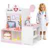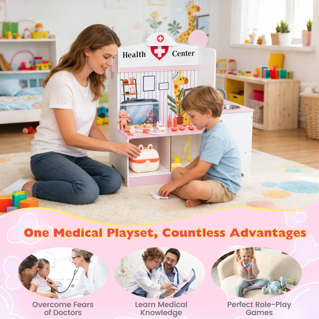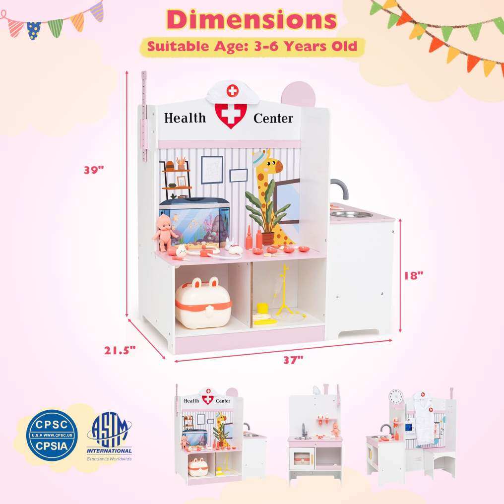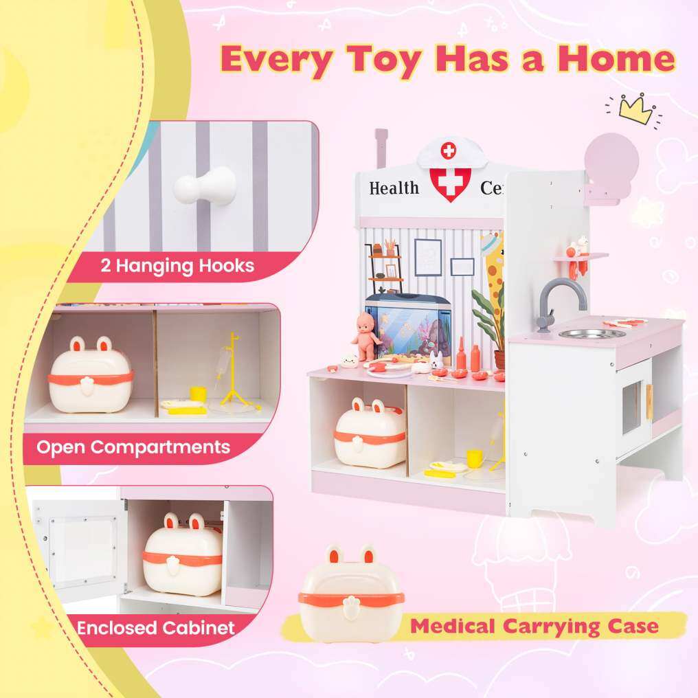 ● Easy Storage: Keeping the playroom tidy is effortless thanks to an included carrying case, 2 hanging hooks, open compartments, and a cabinet. Kids learn organization and responsibility as they store all their medical tools after every "shift," ensuring that clean-up is almost as fun as playtime itself.