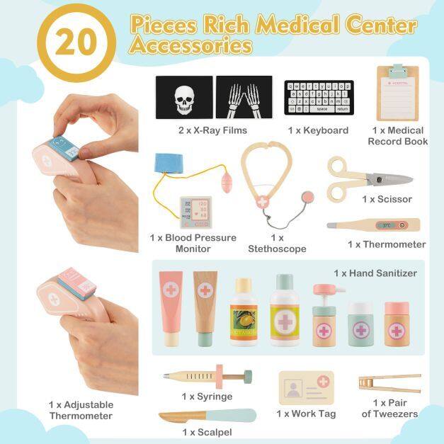 ● Reliable, Child-Safe Construction: Crafted from kid-friendly, enduring grass-tree wood, the toy medical center playset is sturdy enough to withstand enthusiastic little hands while being gentle enough for safe, everyday use. It is built to last so children can enjoy countless hours of imaginative play with friends and family.