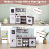Modern Kitchen Playset: Our kids kitchen playset is crafted to replicate a real modern kitchen, equipped with a set of child-sized cookware, including a frying pan, stockpot, strainer, spoon and turner. With its separable modular design for free combinations, the playset blends naturally into the corners of kids’ room or your living area.