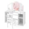 Fully Accessorized Kids Vanity: The vanity is equipped with a high definition tri-fold mirror that can clearly reflect child's face. The matching chair with backrest allows the child to be in the most comfortable position. When the child is finished with makeup, the items can be stored on the storage shelves on both sides to keep the room tidy.