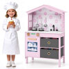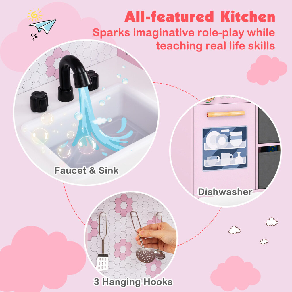 ● Safe, Reliable Construction: Built with young children's safety in mind, the wooden play kitchen showcases rounded corners to prevent bumps, sturdy pine wood handle and legs for lasting strength, and an included anti-tipping kit for extra stability. Parents can relax while kids focus on imaginative play.