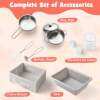 Perfect Gift with Rich Accessories: This play kitchen set comes with complete accessories like a skillet, stockpot, 2 utensils, cup and 2 ice cubes, providing a realistic play experience. ASTM and CPSIA compliant, this play kitchen set is an ideal gift for children aged 3+ years old, offering peace of mind to parents and endless joy to kids.