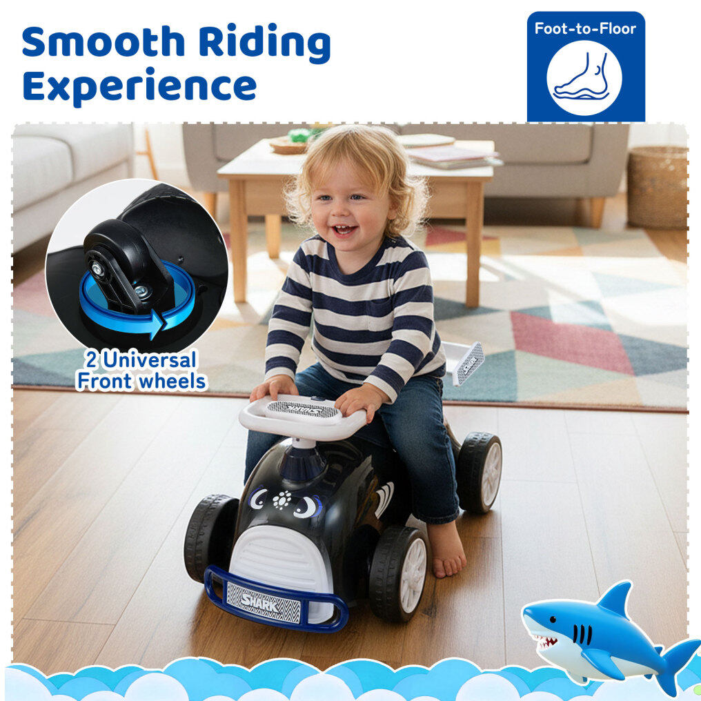 Easy Maneuverability: Equipped with two 360° front wheels and 2 unidirectional rear wheels, this sit-and-scoot toy is easy for kids to control and maneuver. The smooth and wear-resistant wheels are suitable for both indoor and outdoor use, adapting well to wooden floors, rubber tracks, concrete, and asphalt roads.