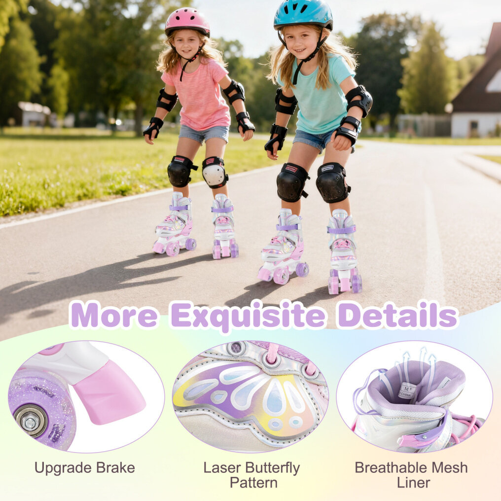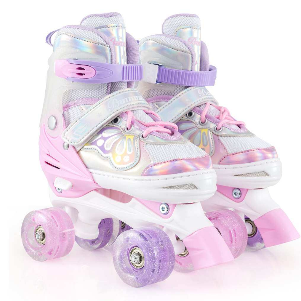 • Cool Illuminated Wheels: Whether cruising on neighborhood sidewalks or skating at the rink, the motion-activated wheels shine brilliantly with every movement without batteries. These glowing wheels turn routine outings into festive occasions, making the roller skates a hit for kids and their friends.