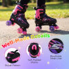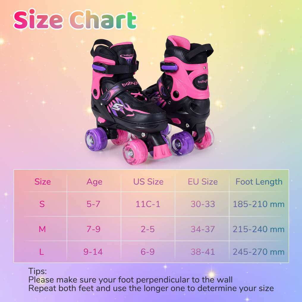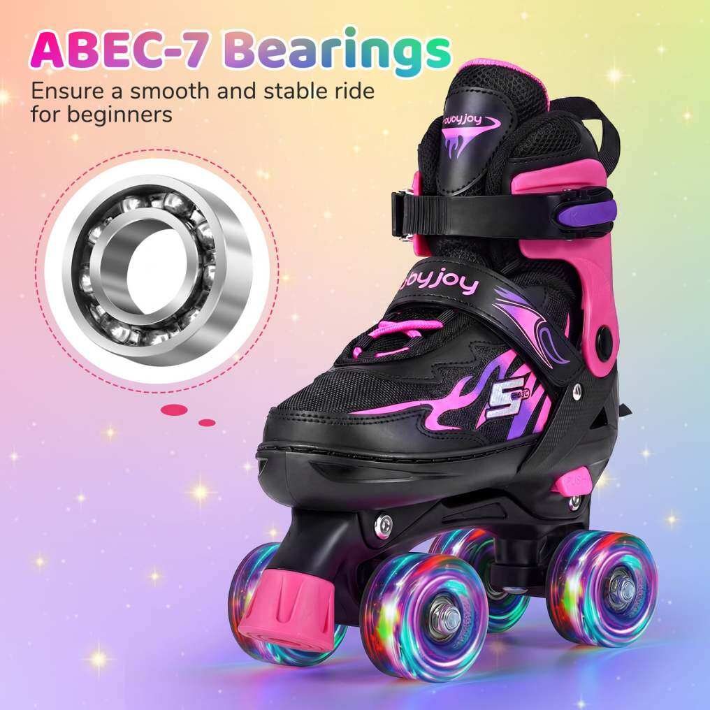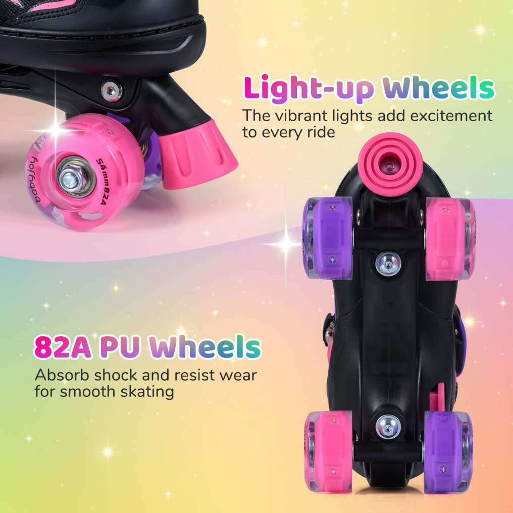 ● Battery-Free Light-Up Wheels: Equipped with motion-activated glowing wheels, these light-up roller skates illuminate with no batteries required. In addition, the vibrant lights add excitement to every ride, whether on neighborhood sidewalks or at the rink, making each outing more enjoyable.
