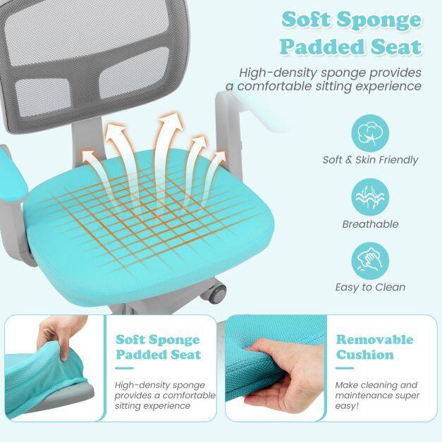 Ergonomic Support: Designed with an ergonomic mesh backrest and an Y-shaped lumbar support, this kids computer chair promotes a healthier sitting posture. The breathable mesh keeps your child cool and comfortable during long study sessions or while engaged in creative projects.