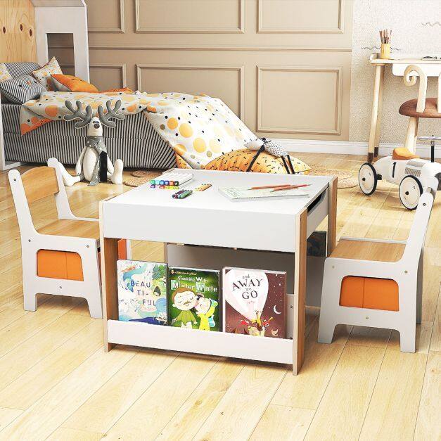 Versatile Children’s Table Set: The children's furniture set comes with 1 table and 2 chairs for 2 kids to share. It’s perfect for various activities, such as eating, studying, reading, and crafting, which is a wonderful addition to the playroom, daycare, or classroom.