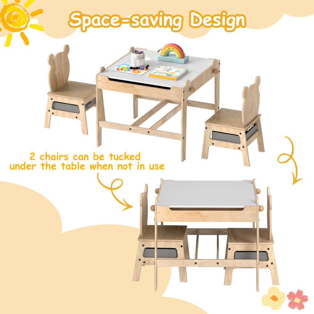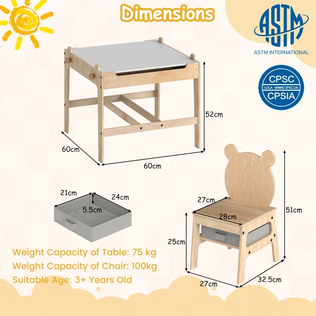 Spacious Storage Solutions: This children activity table and chairs set comes with a cleverly designed hidden storage compartment under the desktop and 2 removable & foldable fabric drawers under the seats for storing toys, books, art supplies and more.