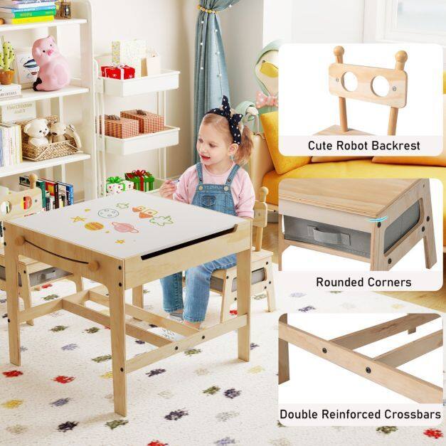 ● Spacious Storage Solutions: This children activity table and chairs set comes with a cleverly designed hidden storage compartment under the desktop and 2 removable & foldable fabric drawers under the seats for storing toys, books, art supplies and more.