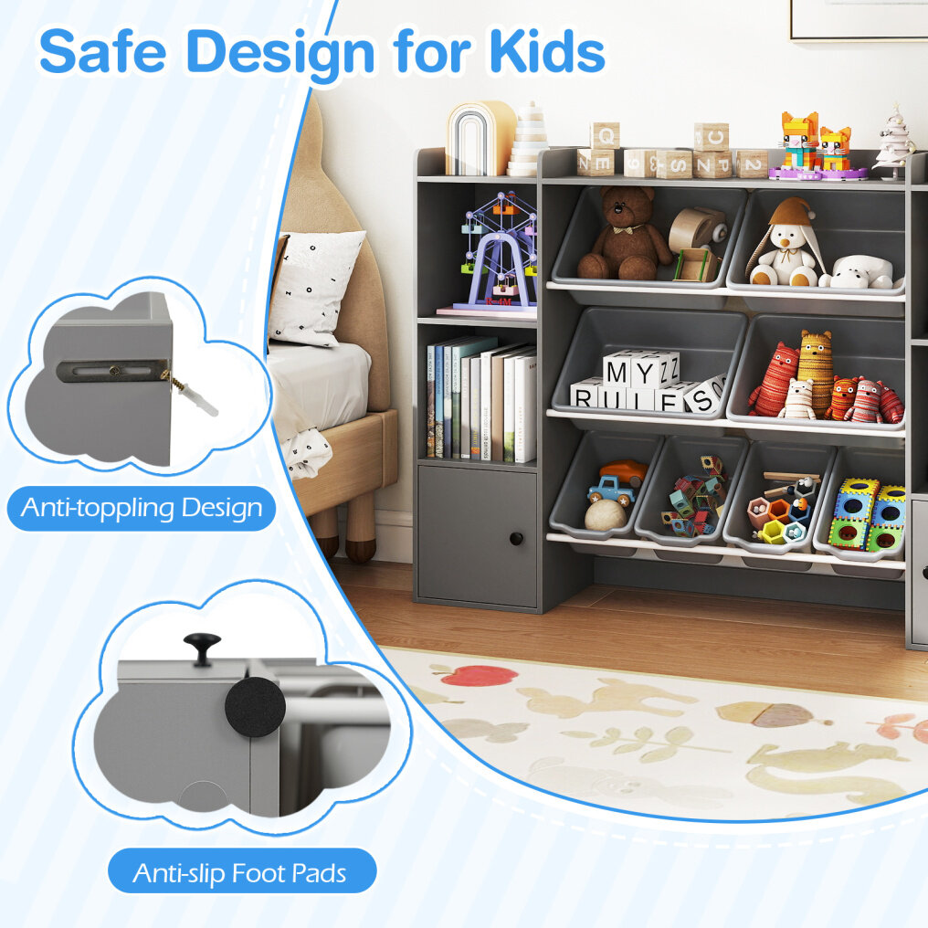● Ample Space for Toys and Books: Featuring open shelves, 2 single-door cabinets, 4 compartments, and 8 storage boxes in 2 different sizes, the kids toy organizer provides generous space for toys, books, puzzles, and more. It keeps your child's room tidy and encourages kids to organize their items.