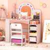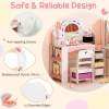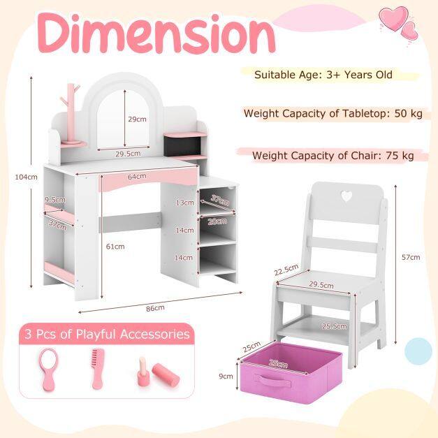 • Organized Beauty Station: With 3 open cubes and a 2-tier bookshelf, this vanity set keeps your child’s room neat and organized. 2 extra open shelves, a tree-shaped jewelry holder, and a special ring area over the spacious tabletop offer plenty of space for accessories and beauty treasures.