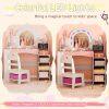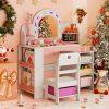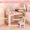 • Versatile Dressing Area: Beyond dressing up, this multi-purpose kids’ vanity table is also perfect for writing, crafting, or painting, sparking creativity every day. Its multi-purpose design makes it a practical and charming gift for any little princess over 3 years old.