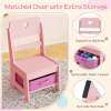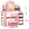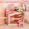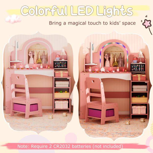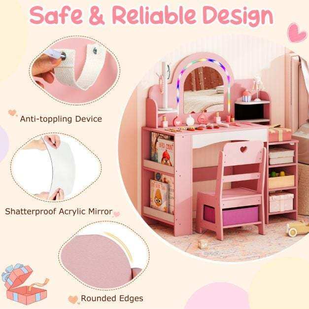 Kids Vanity Set with Colorful LED Lights Princess Makeup Dressing Table with Chair-Pink