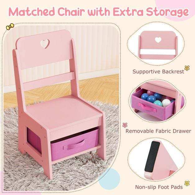 • Matched Storage Chair: The included chair features a supportive backrest and a wide seat for comfortable use, along with a removable fabric drawer beneath the seat for some extra storage. Non-slip foot pads keep the chair stable and protect your floors from scratches.
