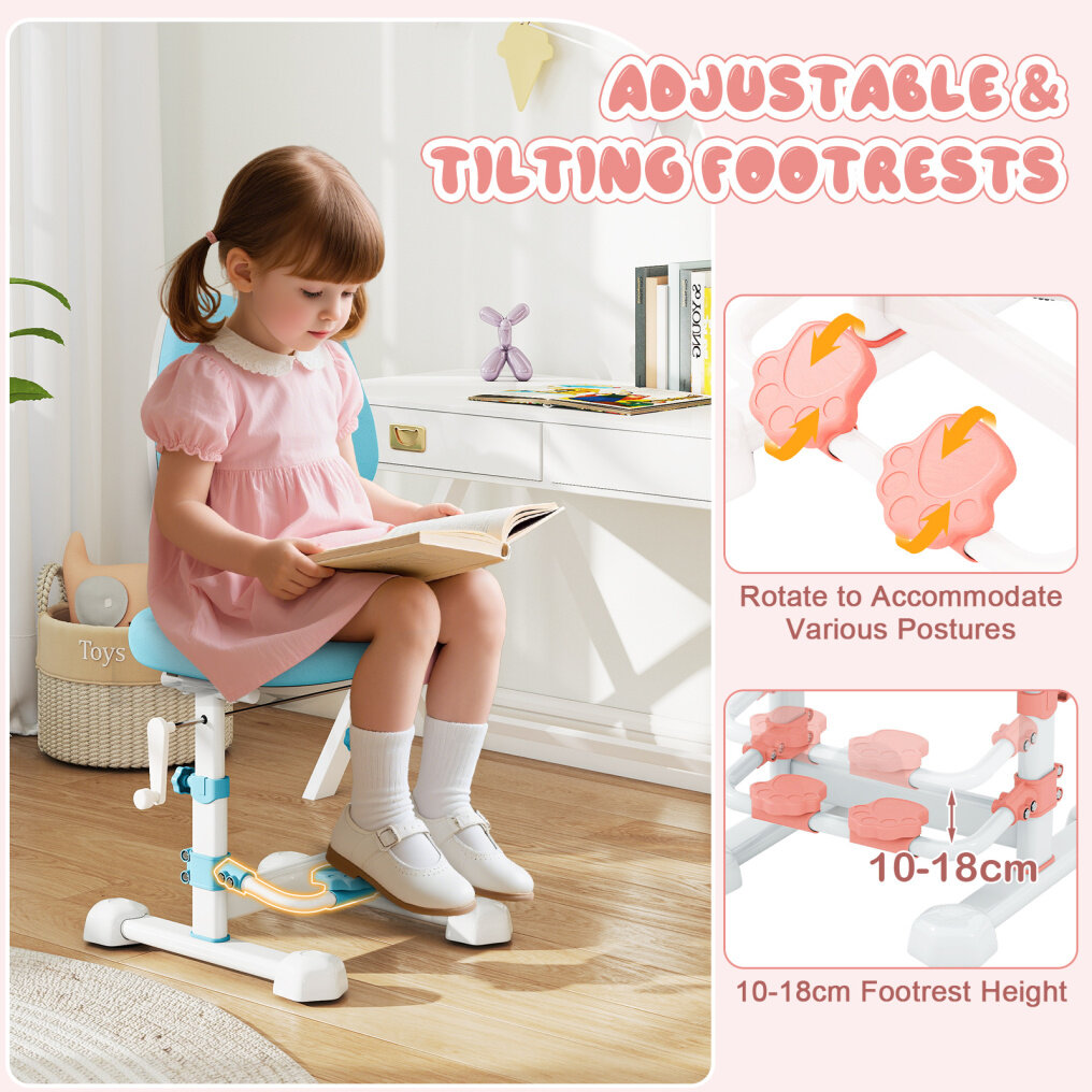 Adjustable & Reclining Footrest: The footrest on our kids' computer chair adjusts from 10-18 cm, growing with your child. Additionally, the footrests rotate to accommodate various postures, keeping legs properly aligned and adding extra comfort.