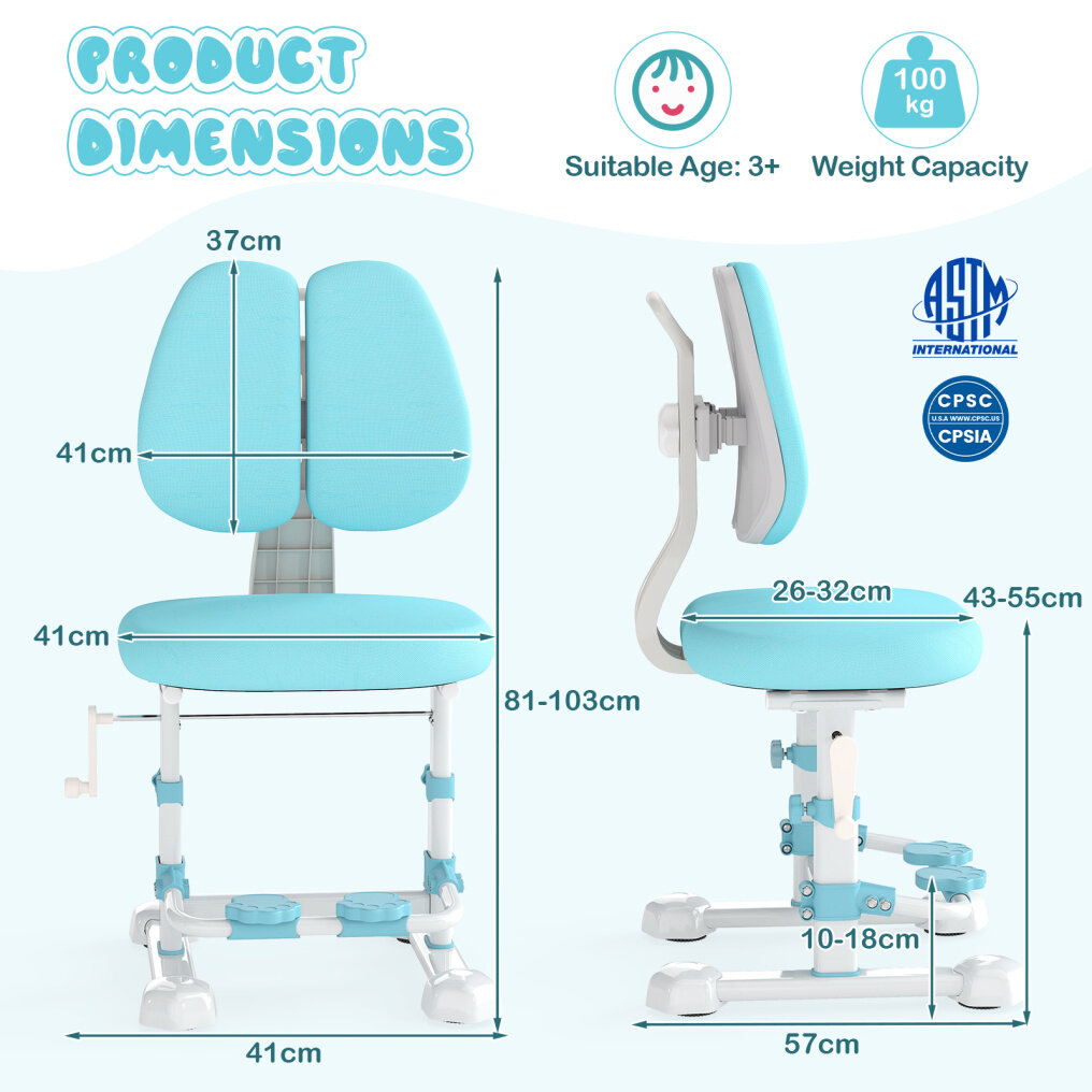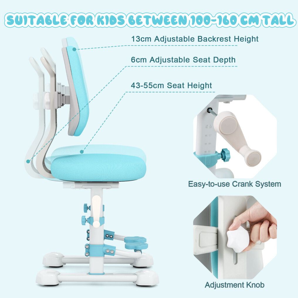 Seat Height & Depth Adjustment: The desk chair offers adjustable seat depth, tailoring the height to your child's needs as they grow. It also features stepless seat height adjustment from 43-55 cm via an easy-to-use crank system, making it suitable for children between 100-160 cm tall.