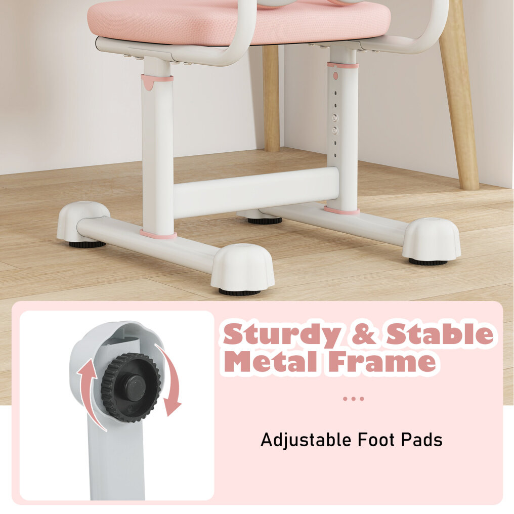 【Sturdy Structure】Built to last with a strong and stable metal frame, this children's study chair ensures stability and durability. Adjustable foot pads adapt to uneven floors and ensure the stability of the chair.