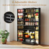 ● Functional Door Shelves: This freestanding tall cupboard is equipped with 16 door shelves, 4 of them are removable and 3-postion adjustable, offering customized storage space for snacks, drinks or canned goods of different heights.