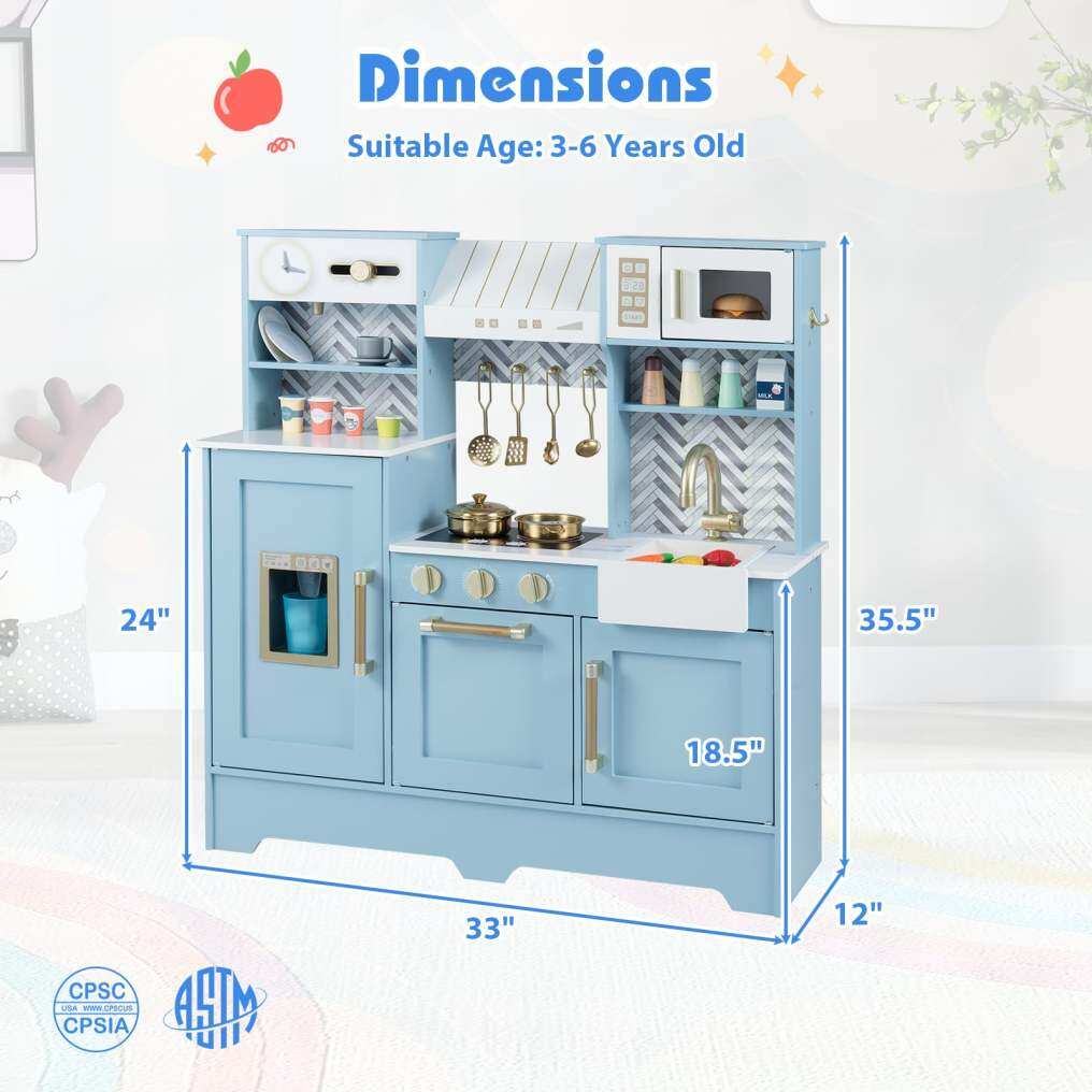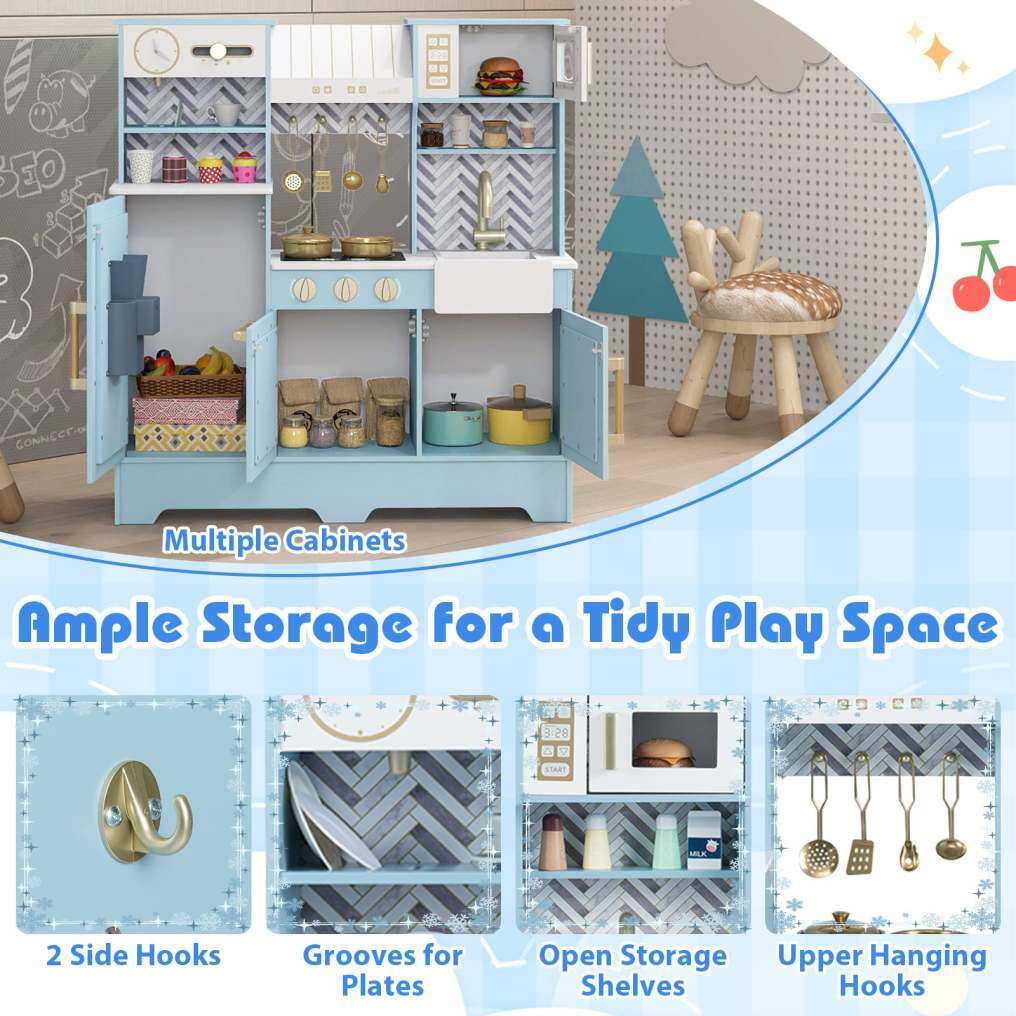 Added Safety & Stability: Designed with solid-wood legs, rounded corners, and an included anti-tip kit, this play kitchen set stays rock-steady even when energetic chefs lean in to stir. Parents relax knowing the kid's interactive play kitchen complies EN71/CPSIA for safe, wobble-free culinary adventures.