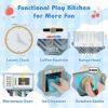 2-Height Counters: The 60 cm coffee bar and 46.5 cm cooktop on this kid's interactive play kitchen grow with your child, so 3-year-olds can reach the lower burners while 6-year-olds master the upper café. Siblings or play-date friends of different heights can cook side-by-side without tiptoes or stooping, making the pretend play toy a social hit.